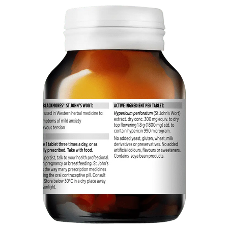 • BLACKMORES ST JOHN'S WORT traditionally used in Western herbal medicine to:• Relieve symptoms of mild anxiety