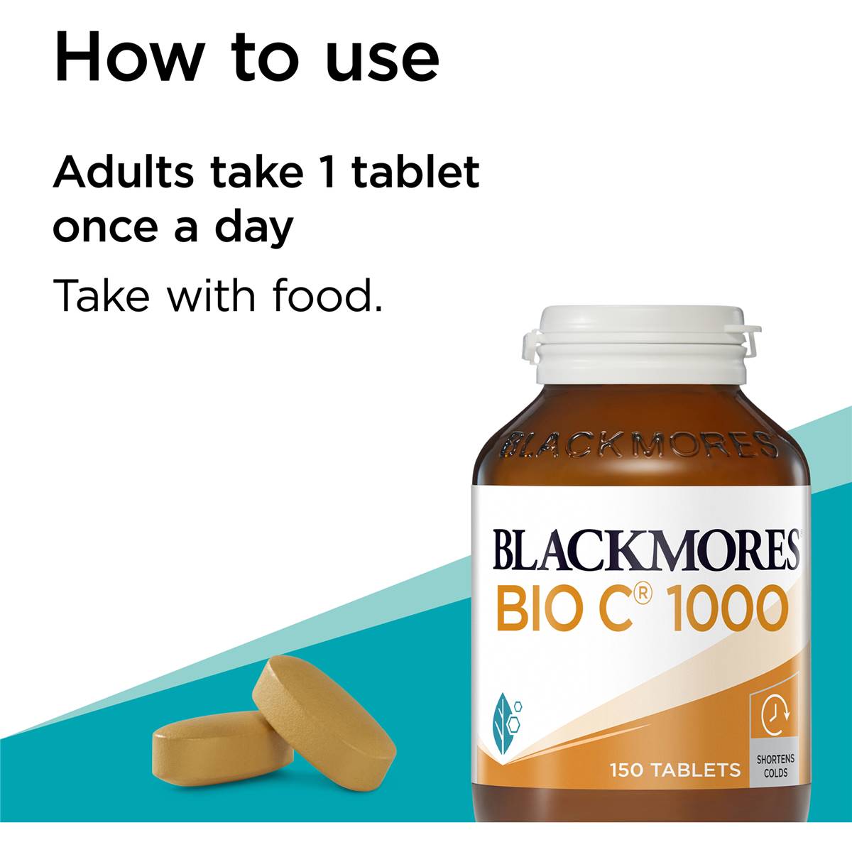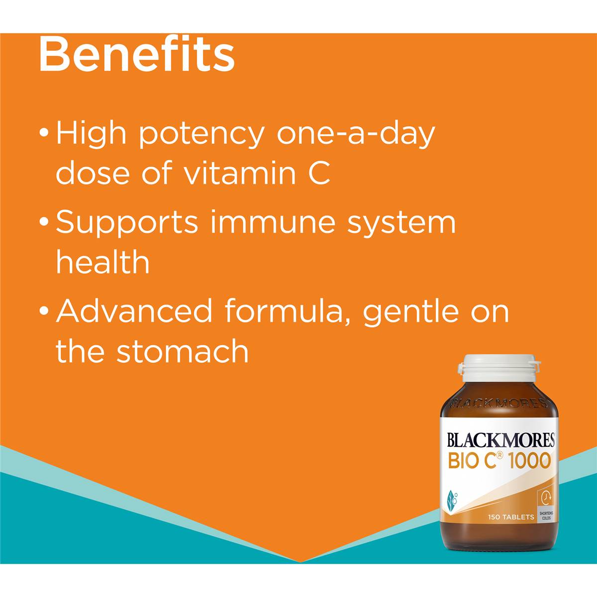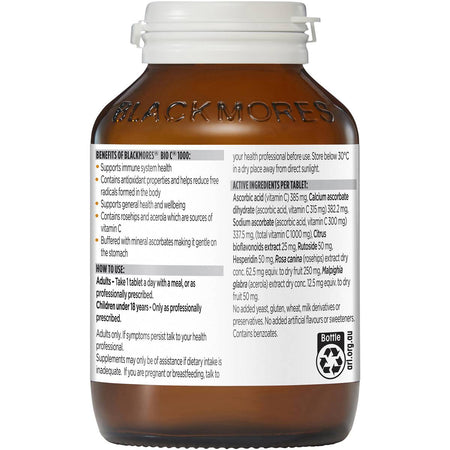 Blackmores Bio C®1000mg is buffered with mineral ascorbates making it gentler on the stomach compared to ascorbic acid alone.Blackmores Bio C®1000mg supports immune system function and reduces the severity and duration of common cold symptoms.