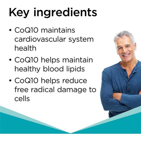 Blackmores CoQ10 150mg contains coenzyme Q10 (CoQ10), an antioxidant which maintains heart health and promotes blood vessel health.