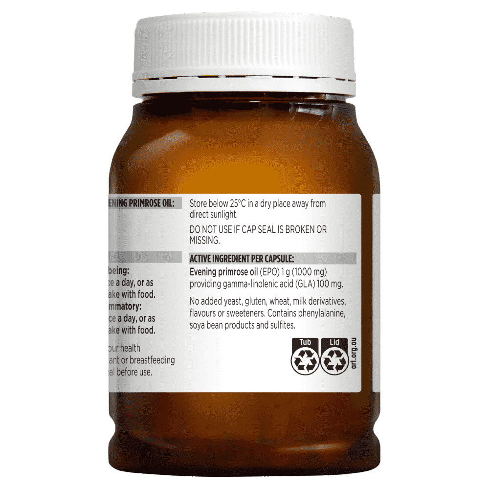 Blackmores Evening Primrose Oil is a natural source of gamma-linolenic acid which can help to support general health and wellbeing, skin health and hydration as well as working to reduce inflammation.Maintaining skin health through supporting skin hydration, Blackmores sources only the best oils that are cold pressed and rigorously testing for quality and highly purified.