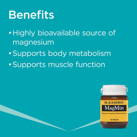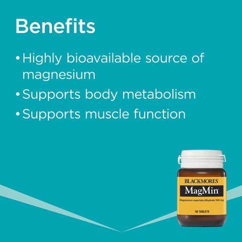 Blackmores MagMinĀ® provides an easy to absorb and bioavailable source of magnesium which is suitable for a range of uses. Magnesium is an essential mineral that has many important rolesĀ and contributes to healthy physical function.