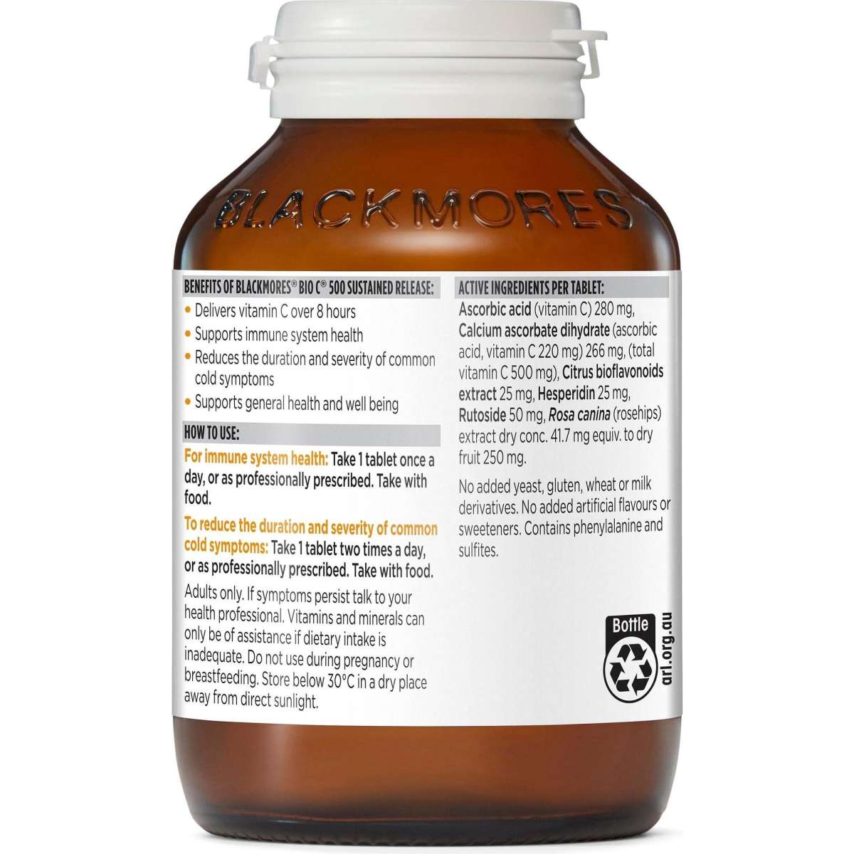 Blackmores Sustained Release C gradually supplies vitamin C throughout the day to reduce the severity and duration of common cold symptoms.Blackmores Sustained Release C has been specifically formulated to be released slowly over a sustained 8 hour period, ensuring that vitamin C is available when your body needs it.
