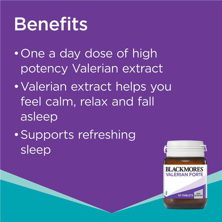 Blackmores Valerian Forte is specifically designed to help reduce the time taken to fall asleep, allowing you to wake refreshed with no associated morning drowsiness.