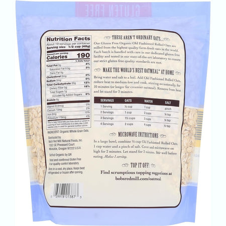 For a wonderfully wholesome breakfast, start your day with a bowl of oatmeal made with Bob's Red Mill Gluten Free Organic Old Fashioned Rolled Oats. They're whole grain, high fiber and provide 7g of protein per serving. Also the perfect baking ingredient for whole grain cookies, breads and cakes.