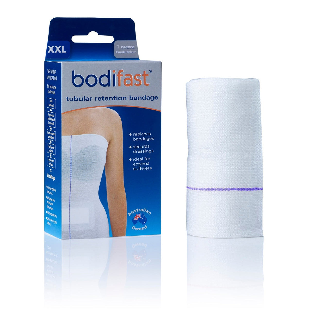 Bodifast® is a high quality seamless white tubular bandage designed to securely hold wound dressings in place on most parts of the body. It can also be effectively used to provide light dermatological covering for eczema sufferers or as an under-cast netting. The Bodifast range is an ideal bandage replacement solution for most wound types to provide firm and consistent retention properties without restricting movement or creating tourniquet effect.