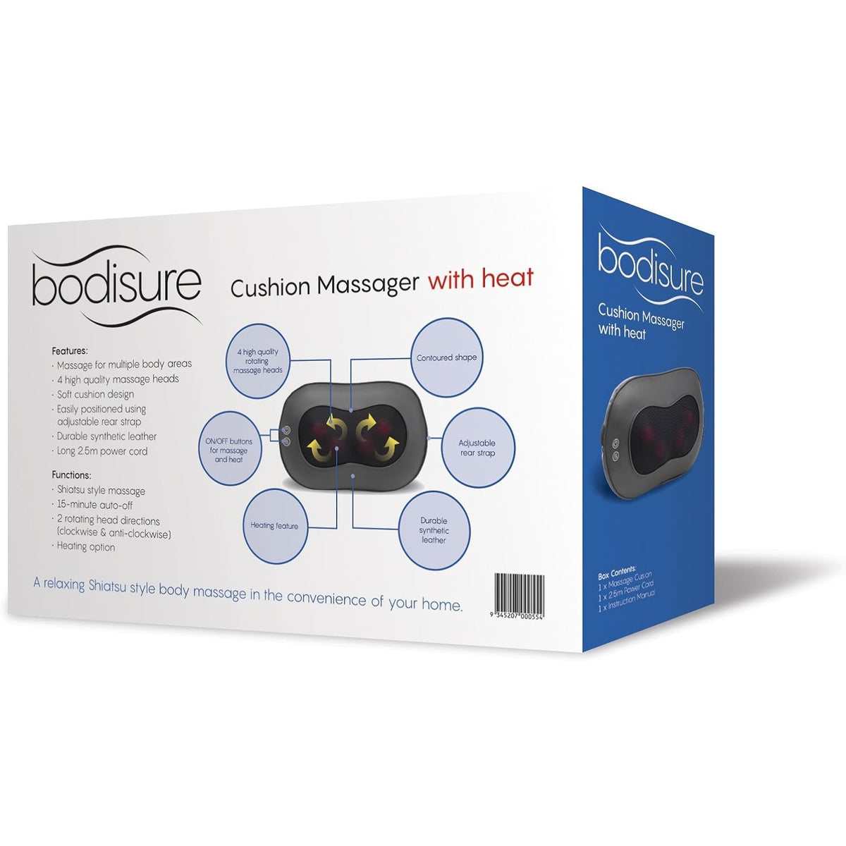 The BodiSure Cushion Massager, with heating option, features Shiatsu style relaxing massage for multiple body areas.