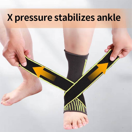 - Cross over top of ankle, and continue under foot and back up over ankle in a figure-8 configuration(C).