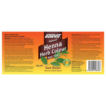 Bonvit Natural Hair Tint Henna Herb Colour (Henna & Herb Blend) Dark Brown 100g