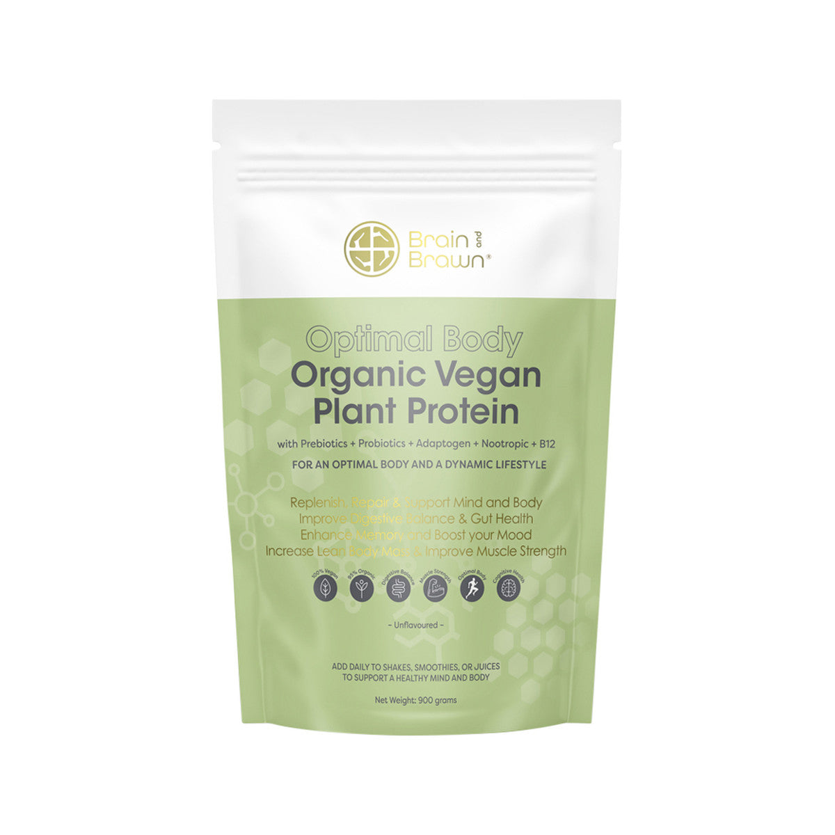 Brain and Brawn Optimal Body Organic Vegan Plant Protein Unflavoured 900g