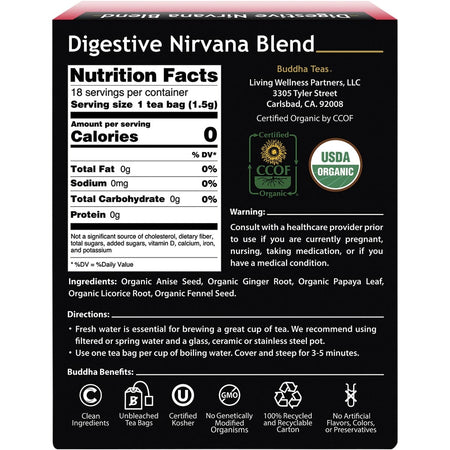BUDDHA TEAS Organic Herbal Tea Bags Digestive Nirvana Blend 18