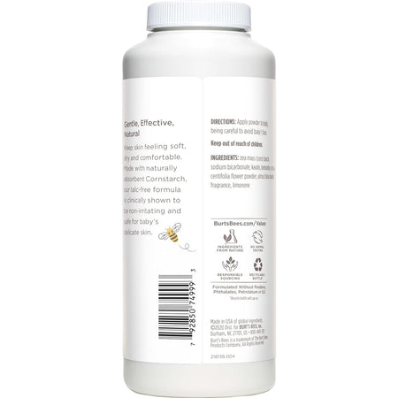 Our Baby Bee® Dusting Powder is clinically shown to be non-irritating and safe for baby’s delicate skin. This 100% natural, talc-free baby powder keeps skin feeling soft, smooth, dry and wonderfully scented. The naturally absorbent cornstarch makes it safe and smooth for topical use. Plus, it’s pediatrician-tested so you can use it with confidence. Nurture baby’s skin naturally with Baby Bee® from Burt’s Bees®.