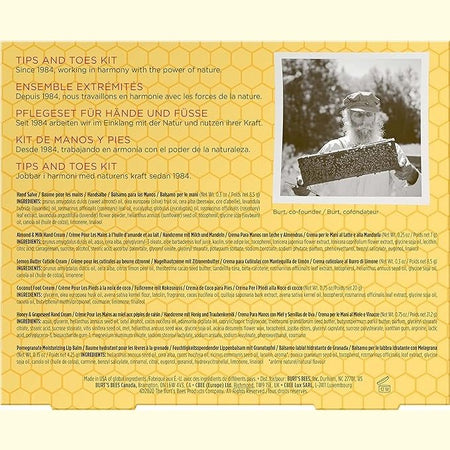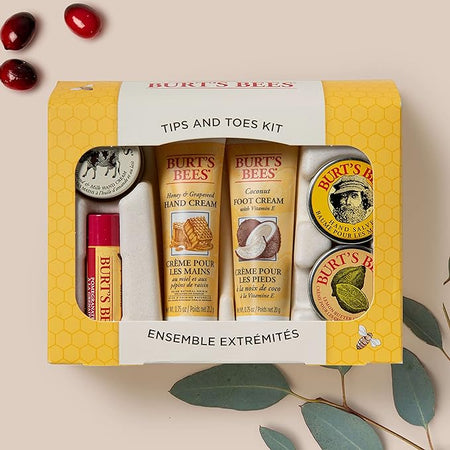 Pamper the hard-working hands and feet of someone special with our Tips and Toes Kit. This gift pack includes an amazing natural assortment of 6 Burt’s Bees favourites for fingers and toes, in trial size portions. Almond Milk Beeswax Hand Cream, Thoroughly Therapeutic Honey and Grapeseed Oil Hand Cream and Hand Salve lovingly moisturise dry hands, while Lemon Butter Cuticle Cream nourishes and hydrates nails and cuticles. Feet also get some much needed attention with rich Coconut Foot Cream. Finally, Replenishing Lip Balm with Pomegranate Oil soothes and softens dry lips. This beauty kit provides serious softening and hydrating for dry skin. Give the gift of natural with Burt’s Bees.