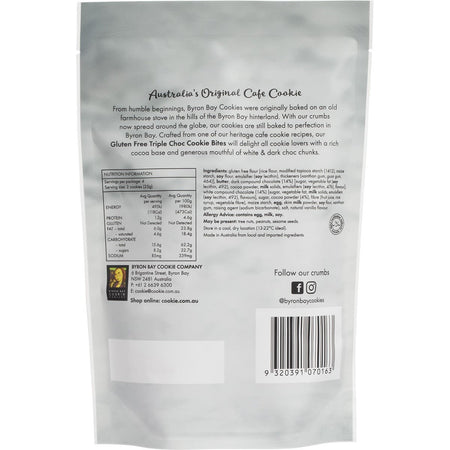 Byron Bay Cookies Gluten Free Cookie Bites Triple Choc Fudge 100g 6 Pack
