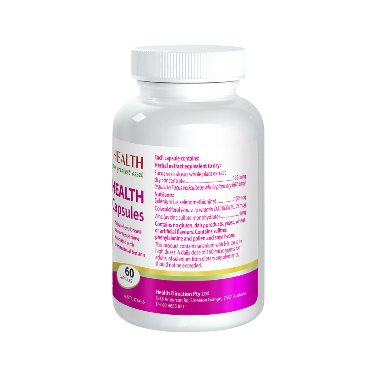 Our Breast Health capsules combine important nutrients that may help relieve breast tenderness associated with pre-menstrual tension.