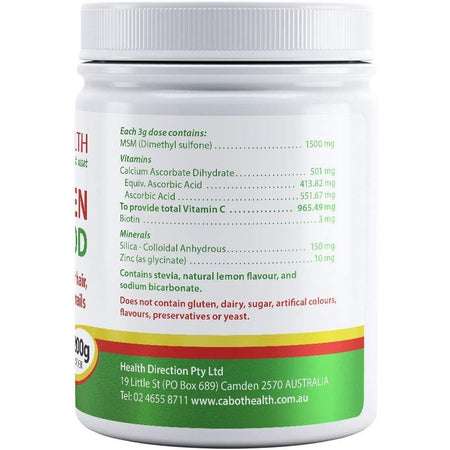 Cabot Health Collagen Food powder is formulated with ingredients to help your body make its own collagen. As we age, our collagen deteriorates, and we don't make as much new collagen as when we were young. Most collagen products on the market contain collagen from animals or marine life. Our Collagen Food powder is suitable for vegans and does not contain any animal products. Give your body the ingredients it needs to make healthy, strong collagen.