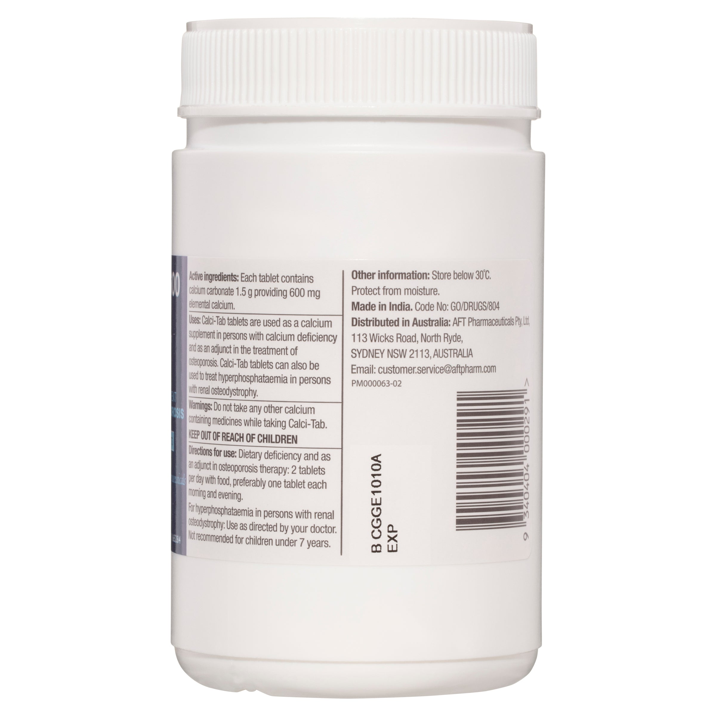 Calci-Tab® tablets are used as a calcium supplement in people with calcium deficiency and as an adjunct in the treatment of osteoporosis. Calci-Tab® can also be used to treat hyperphosphataemia in people with renal osteodystrophy.