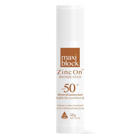 Protect and enhance your skin with MAXIBLOCK ZINC ON SPF50+ STICK BRONZE 12G. This convenient and portable stick provides broad spectrum UVA/UVB protection while adding a subtle bronze glow. With its high SPF and zinc-based formula, you can confidently enjoy the sun without worrying about harmful rays.