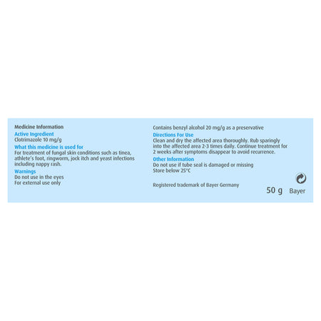 Canesten Anti-Fungal Cream 50g provides effective treatment for common fungal infections such as athlete's foot, fungal nappy rash, ringworm, jock itch and other tinea infections.