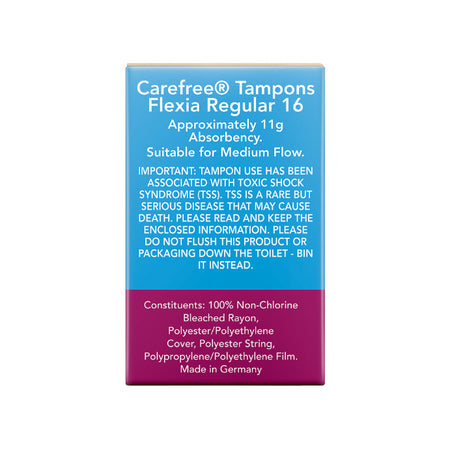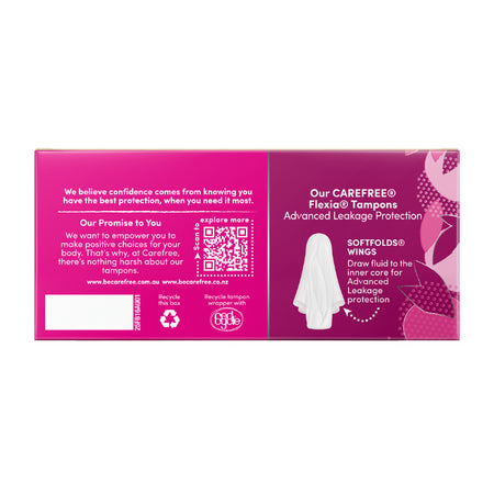Carefree Flexia Tampons Regular catch fluid other tampons may miss. Carefree Flexia tampons have unique Softfolds flexible wings for our most advanced protection against leakage. Adapts To Your Body: Softfolds adapt to your body to catch fluid other tampons may miss. Advanced Protection: Softfolds draw fluid to the inner core of the tampon for extra peace of mind. CPP |