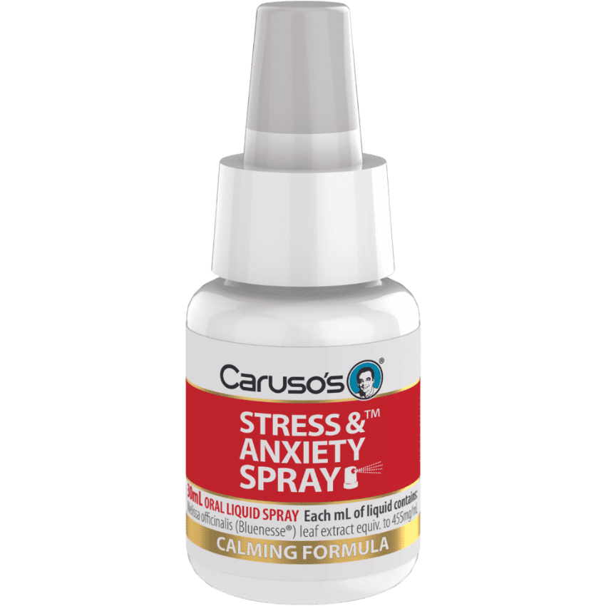 Caruso’s Stress and Anxiety Spray is a convenient liquid formula which helps to reduce symptoms of mild anxiety and assist the body in coping with environmental stress. Lemon balm has actions in calming the mind, soothing the nerves and supporting an overall healthy mood and emotional balance.