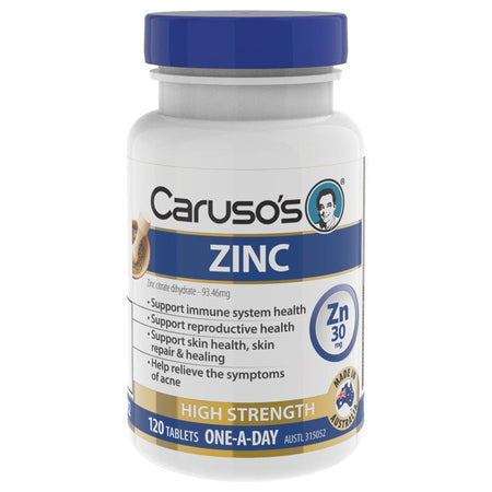 Caruso’s Zinc is a high strength one-a-day zinc supplement which can help to support the immune system, the reproductive system and skin health.