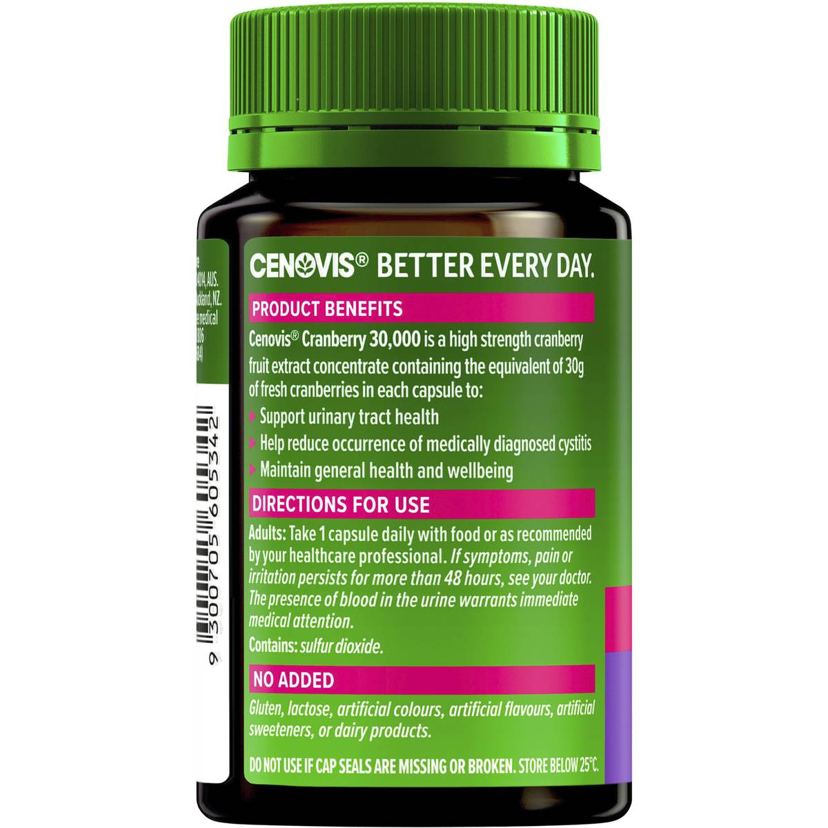 CenovisĀ® Cranberry 30,000 is a high strength cranberry fruit extract concentrate containing the equivalent of 30g of fresh cranberries in each capsule to: