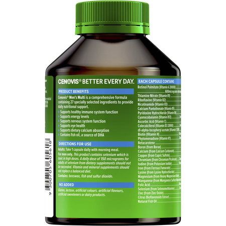 Cenovis® Men's Multi is a comprehensive formula containing 27 specially selected ingredients to provide daily nutritional support.⢠Supports healthy immune system function