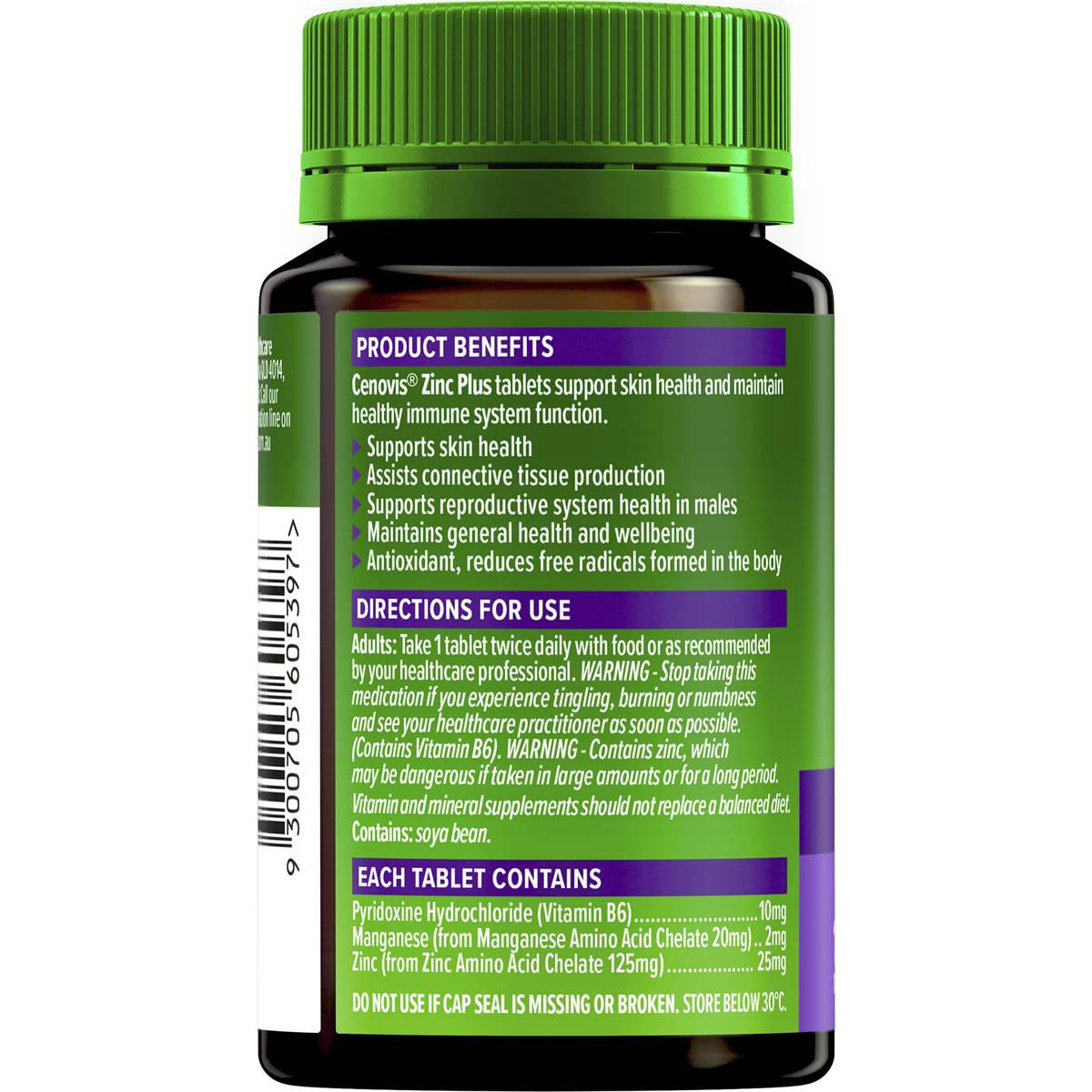 Cenovis Zinc Plus tablets support skin health and maintain healthy immune system function.- Supports skin health.