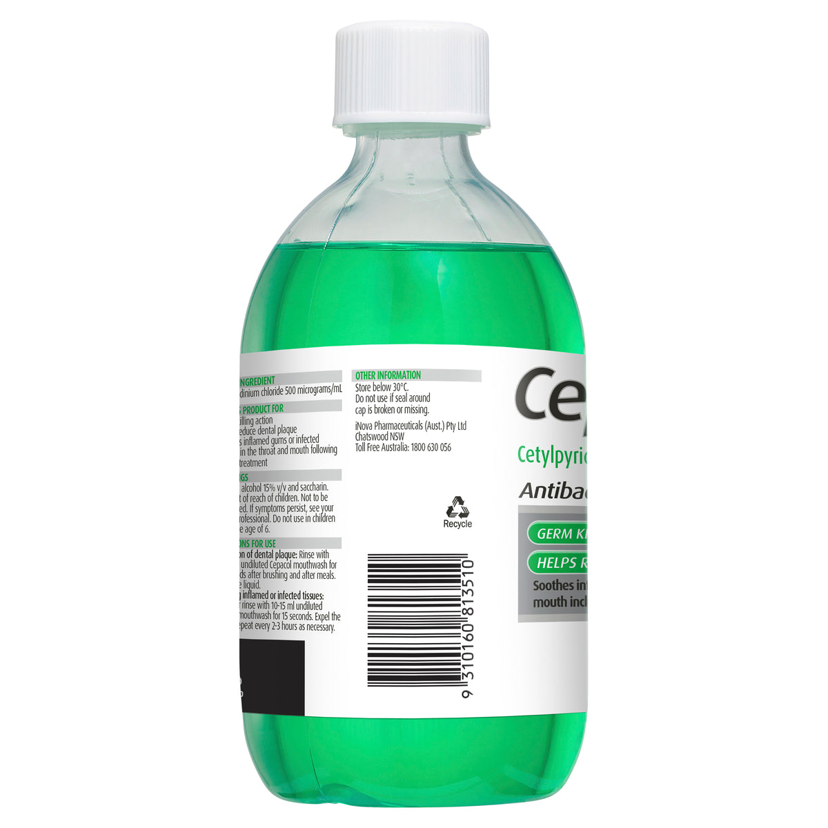Cepacol Antibacterial Mouthwash kills germs and helps reduce dental plaque.