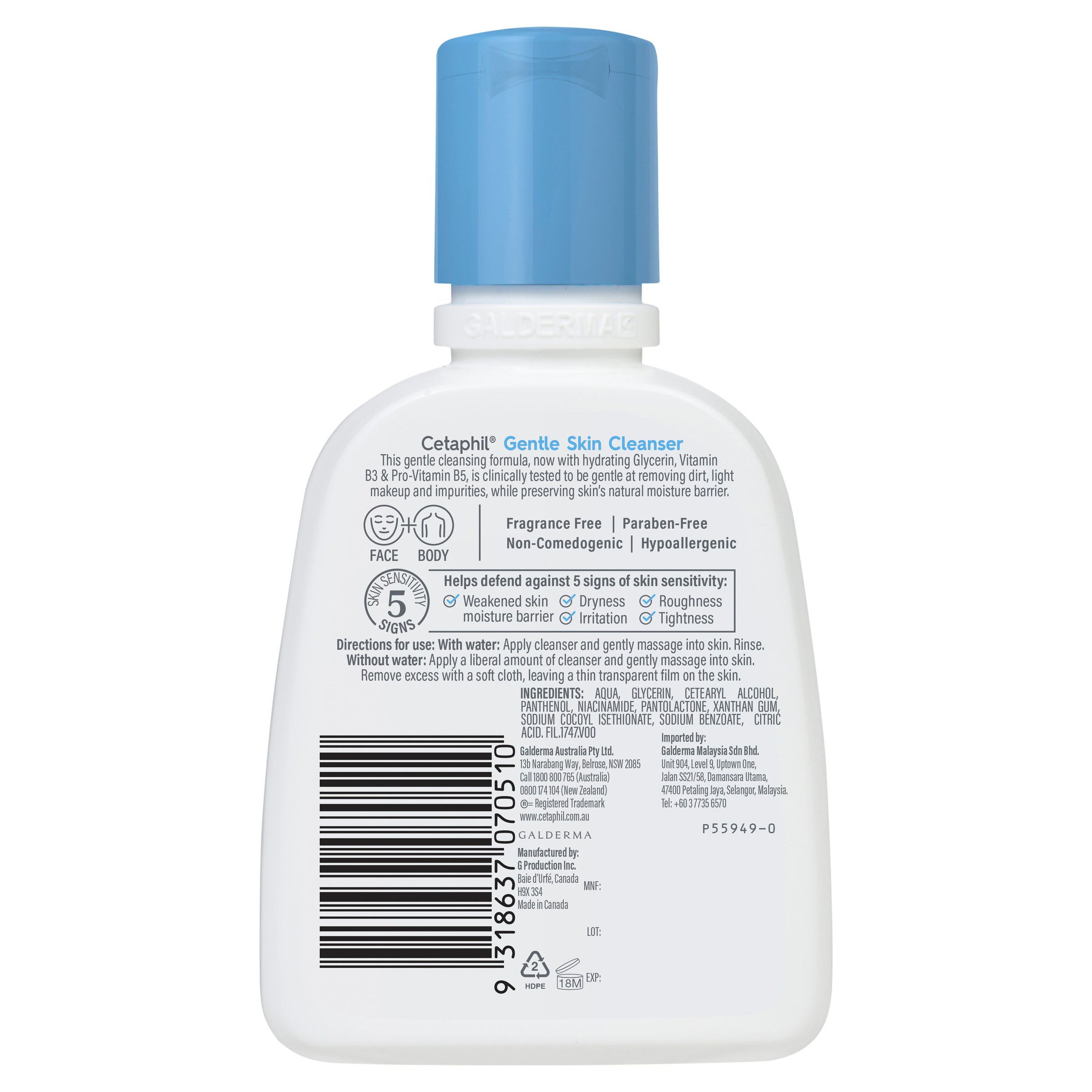 Cetaphil Gentle Skin Cleanser is a daily care for sensitive skin for your face and body that won't sting your eyes, is soap and fragrance free, moisturises as it cleanses and dermatologist recommended.