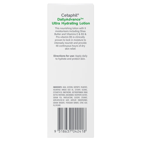 Cetaphil Daily Advance Ultra Hydrating Lotion is for daily care for sensitive skin, clinically proven to hydrate and protect dry skin for 24 hours for face & body.