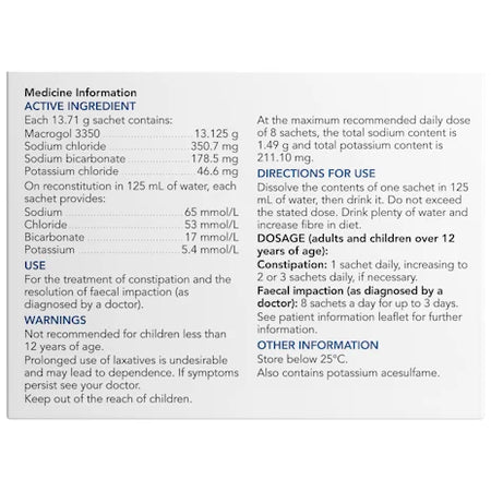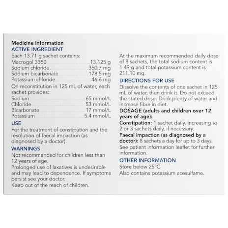 "Effectively relieve constipation with Chemist Own MACROGOL powder. Each 13.71g packet contains a clinically proven formula that gently and comfortably softens stool for easy and regular bowel movements. Expertly formulated by chemists, this 30-pack is perfect for long-term use. Say goodbye to discomfort and hello to regularity."