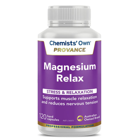 Chemists’ Own PROVANCE Magnesium Relax combines magnesium, glycine, and the herbal medicines passionflower and lemon balm. Chemists’ Own PROVANCE Magnesium Relax has been formulated to support muscle relaxation and nervous system health and includes herbs traditionally used in Western herbal medicine to reduce nervous tension and restlessness.