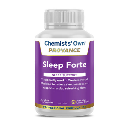 Chemists’ Own PROVANCE Sleep Forte combines valerian, hops, passionflower, and lemon balm. It has been formulated with herbs used in traditional Western herbal medicine to reduce sleeplessness, relieve disturbed or restless sleep, and decrease the time taken to fall asleep.