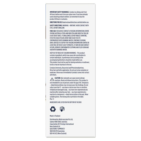 Read and follow instructions on enclosed leaflet. Can cause an allergic reaction - follow the safety instructions. Follow safety instructions perform allergy alert test 48 hours before colouring. Important safety warnings. Conduct an allergy alert test 48 hours before each time you colour, even if you have already used colouring products before. So remember to buy the product 48 hours in advance.Do not swallow. For external use only.
