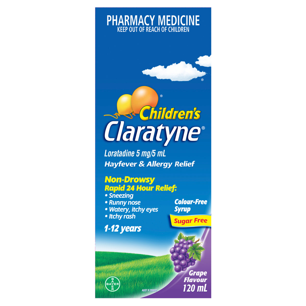 Claratyne Children's Grape Flavoured Syrup provides rapid 24 hour relief from symptoms of hayfever, year round allergies and chronic urticaria (hives) without causing drowsiness.
