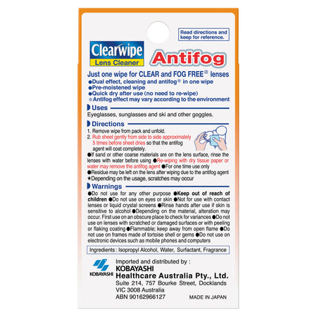 This Clearwipe AntiFog Lens Cleaner is a specifically formulated lens cleaner that easily lifts grease and dust without leaving scratches. This pack comes with wipes pre-moistened with cleaning solution that dries quickly and leaves a streak-free finish.