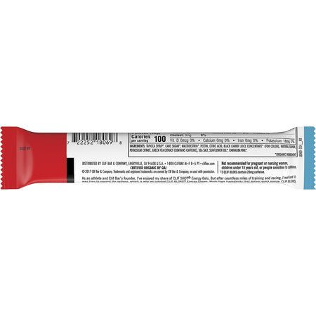 Organic Tapioca Syrup, Organic Dried Cane Syrup, Organic Maltodextrin, Pectin, Acidity Regulator (Citric Acid, Potassium Citrate), Black Carrot Juice Concentrate, Natural Flavour, Green Tea Extract (Source of Caffeine), Sea Salt, Organic Sunflower Oil, Glazing Agent (Carnauba Wax). Contains Caffeine.CLIF54CPP