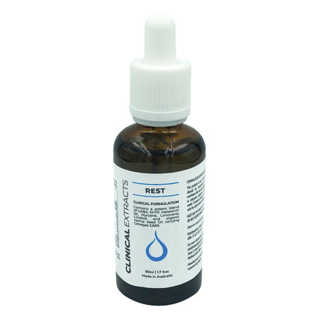 Clinical Extracts is proud to present REST, a WORLD FIRST blend of Terpenes, Amino Acids, and Herbal Extracts, representing the cutting edge of terpene technology. Contained within this 50ml bottle, you will find a combination of organic Hemp Seed Oil, GABA, 5HTP, Melatonin 6X, Myrcene, Limonene, and Linalool.
