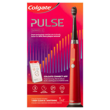 An Electric Toothbrush with smart coaching for a superior clean. Colgate Pulse Series 2 Electric Toothbrush has an app that coaches you to a healthier smile. Smart technology coaches you to brush better for 50% more plaque removal.