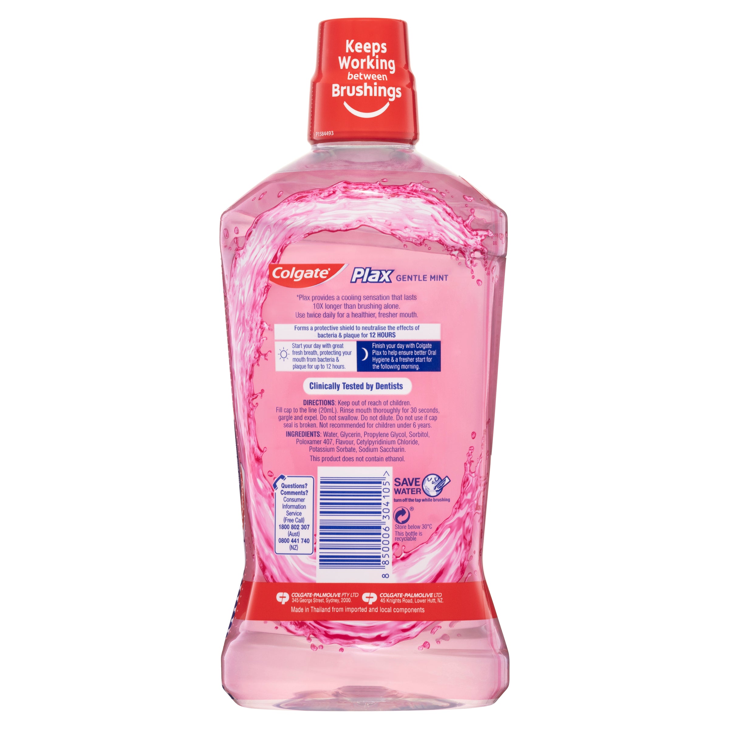 Colgate® Plax® Antibacterial Alcohol free fluoride Gentle Care mouthwash helps give you protection against bacteria, reaching all those hard to reach areas and freshening up your whole mouth. Its gentle, alcohol-free formula is suitable for sensitive mouths.Colgate® Plax® provides a cooling sensation that lasts 10X longer than brushing alone. Use twice daily for a healthier, fresher mouth.