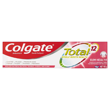 Colgate Total 12 Sensitivity and Gum Health Toothpaste helps protect against sensitive teeth pain, fights plaque bacteria for improved gum health, and assists in the treatment and prevention of gingivitis.