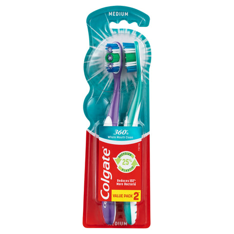 Colgate 360 Whole Mouth Clean Medium Full Head Value 2 Pack