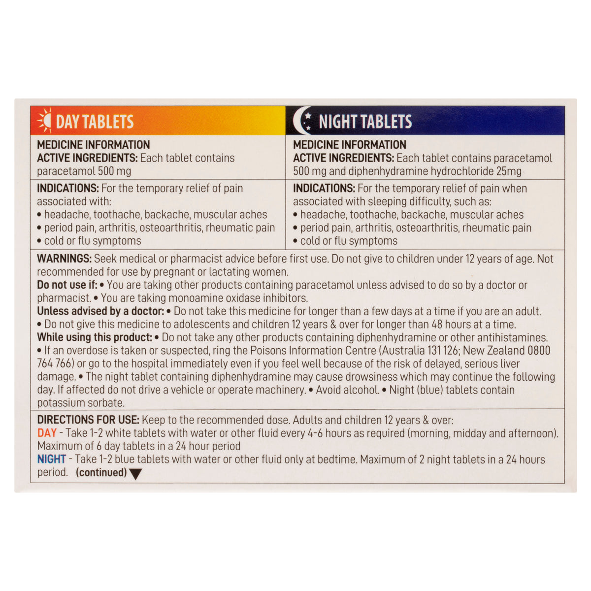 Diphenhydramine Hydrochloride 25mg, Paracetamol 500 mg.