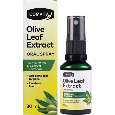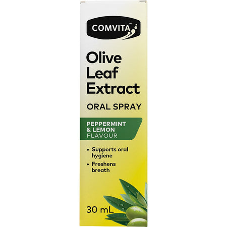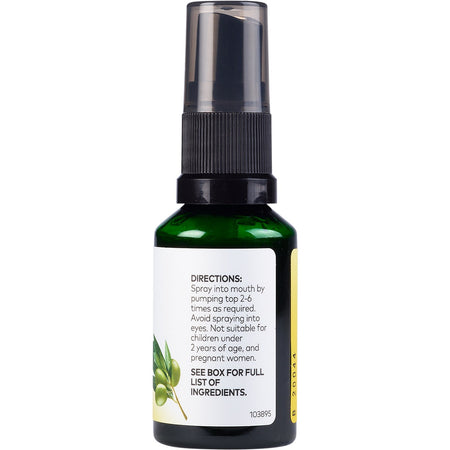 COMVITA Olive Leaf Extract Oral Spray in Peppermint & Lemon flavor provides you with a measured, convenient dose of olive leaf extract to support your daily health needs. All COMVITA products are made from natural ingredients and so are free from preservatives and artificial flavors, so you get the benefits of olive leaf extract with a refreshing peppermint and lemon taste.