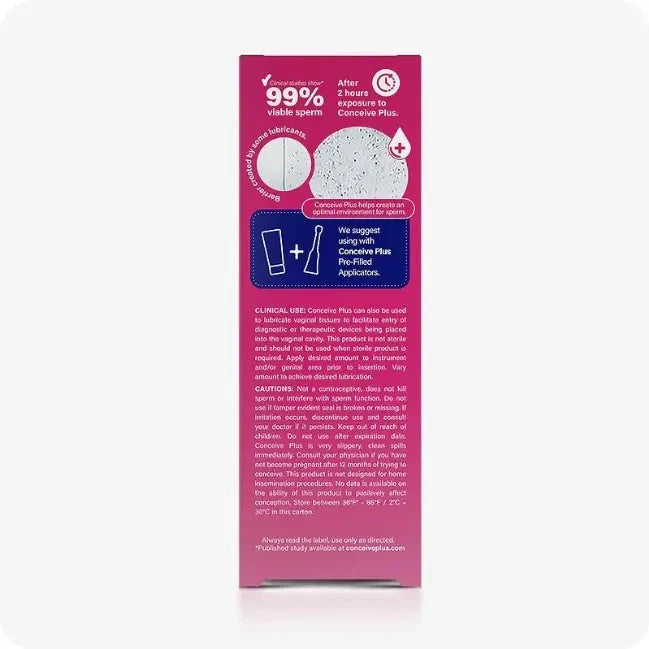 Conceive Plus fertility lubricant is for use by ALL couples trying for a baby. Available over-the-counter, online and in-stores in multi-use tubes and in pre-filled applicators.