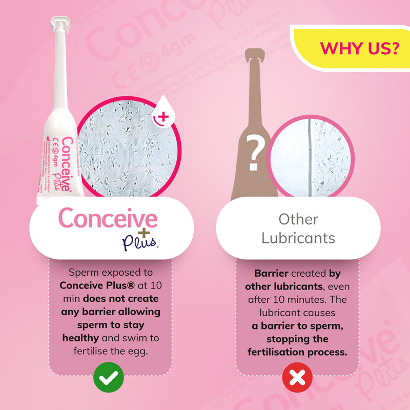 Conceive Plus is a fertility-friendly lubricant for use by all couples who want to have a baby, whether you are just preparing to conceive or have been trying to get pregnant for some time. Unlike regular lubricants, it is isotonic and pH balanced to imitate the body's own natural fluids, and it is compatible with sperm to promote fertilisation. Conceive Plus is the only lubricant that contains Calcium and Magnesium ions to support fertility and the process of conception to help increase the chances of getting pregnant naturally. Clinical studies show 99% viable sperm after 2 hours exposure to Conceive Plus.* Finally, it enhances the ease and comfort of intimate sexual activity to assist couples on their path to pregnancy.