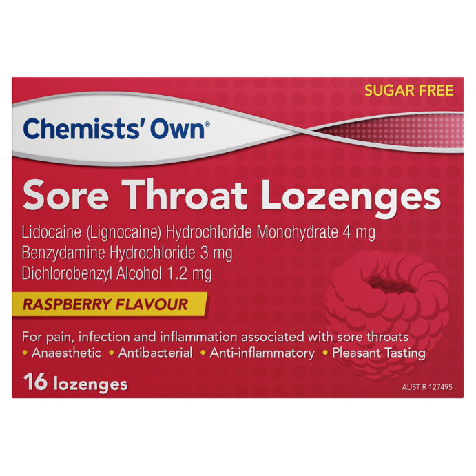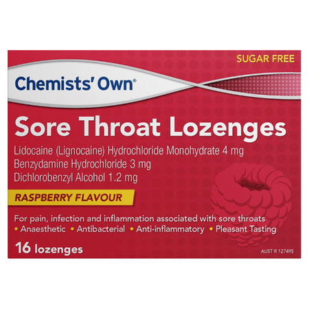 Chemists’ Own Sore Throat Raspberry 16 Lozenges
