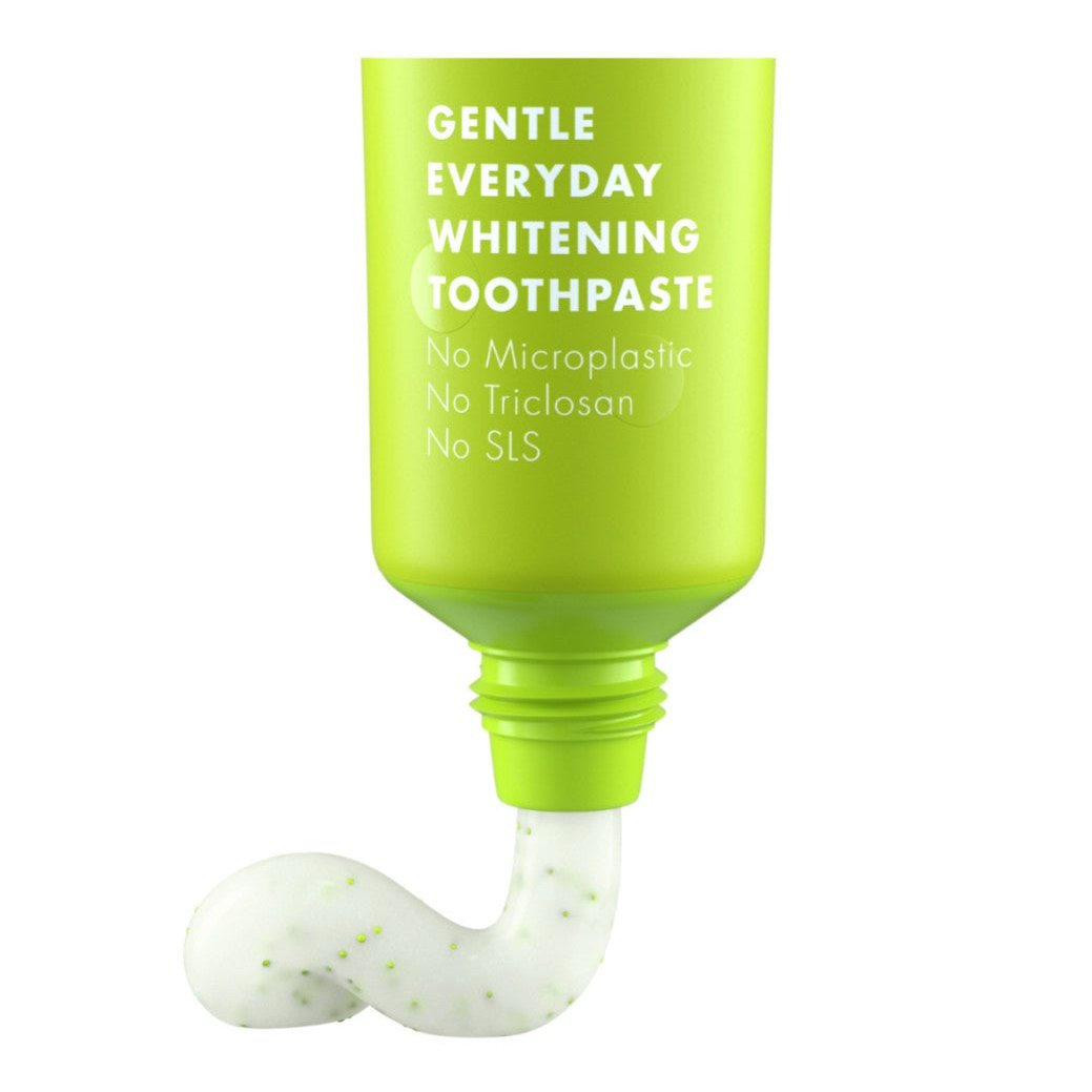 Fluoride is a must. Hydroxyapatite and glucose oxidase, along with natural ingredients, ensure an enzymatic whitening effect that’s gentle on your teeth. And xylitol, birch sugar, tastes sweet as it strengthens your teeth and tackles bacteria. Extracts of echinacea, bitter orange, devil’s claw, and Indian pennywort support your mucus membranes and stop inflammation. Plus provitamin B5, which supports the formation of new cells. No SLS, no triclosan, no micro plastic. RDA approx 50. And the power beads? They contain a powerful dose of menthol.