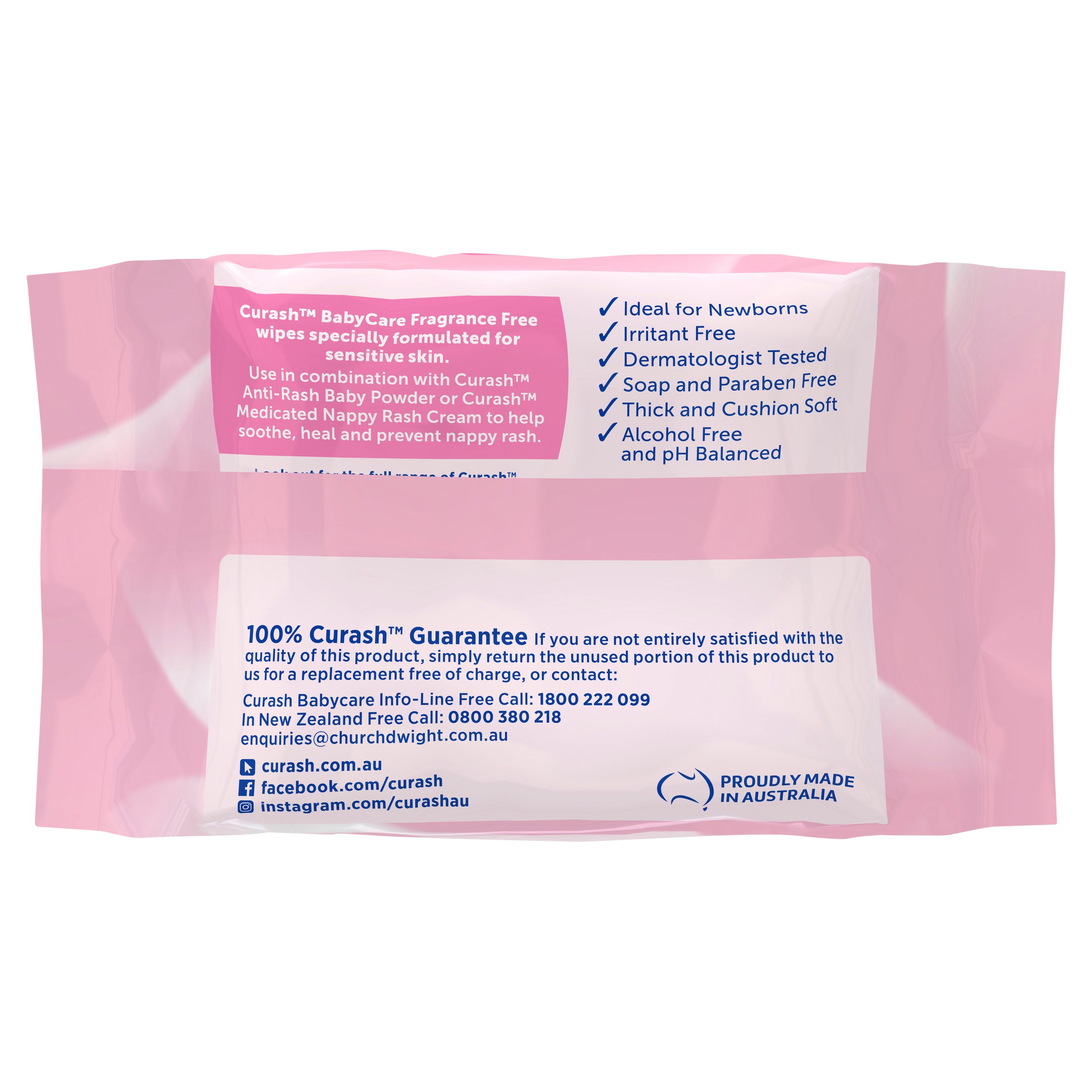 Curash™ Babycare Fragrance Free baby wipes gently cleanse baby's skin and help protect against nappy rash. Travel Size 20 Pack.